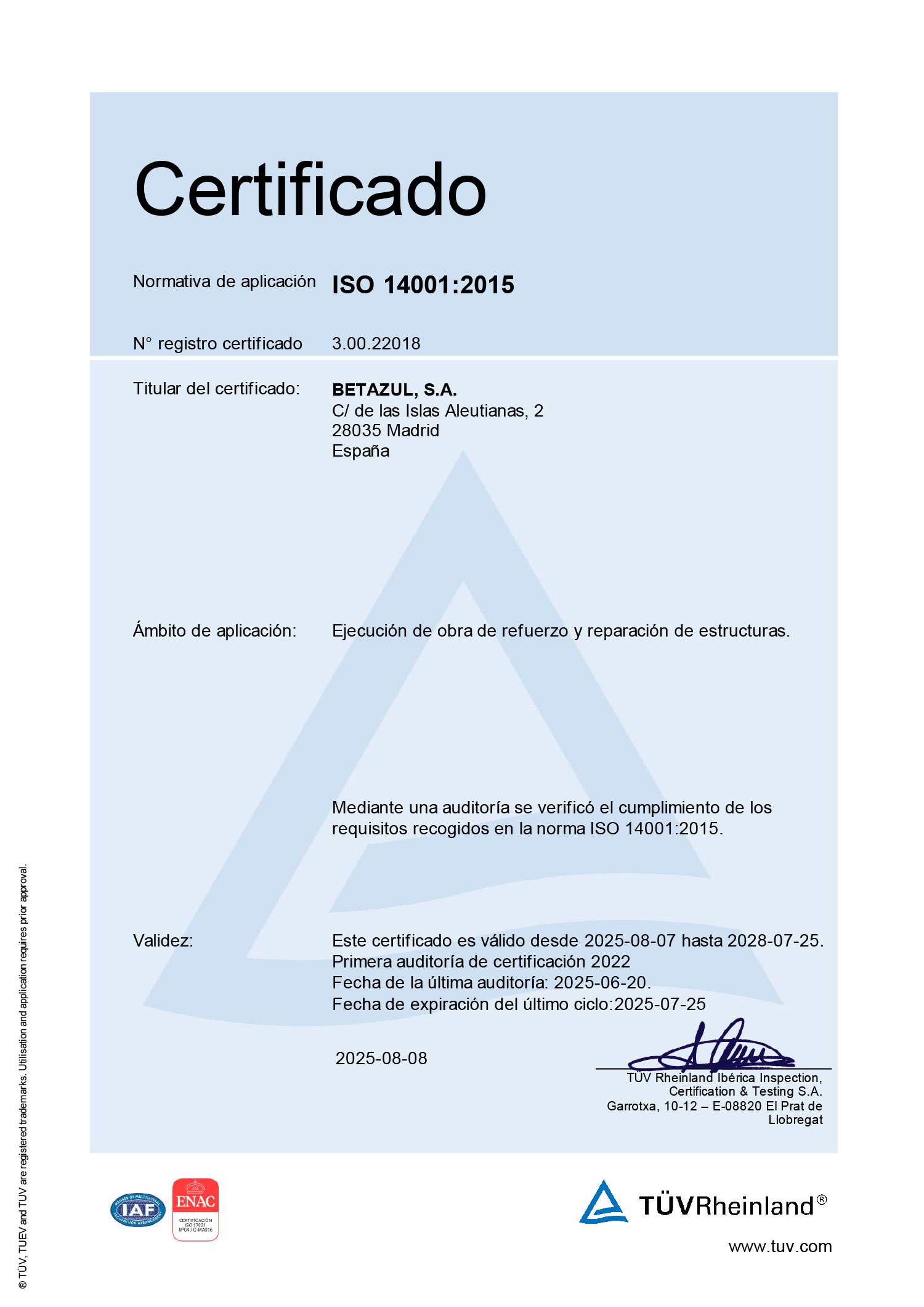Además del aval de las más de 2.000 obras que ya hemos acometido y los 350 clientes que han confiado y siguen confiado en nosotros, nuestro trabajo se respalda en una oficina técnica que lo planifica y un equipo experto que lo ejecuta de modo efectivo. Ello nos permite, además de responder satisfactoriamente a lo que demandan nuestro clientes, optimizar los procesos y aportar soluciones innovadoras cuando es preciso. De este modo hemos logrado ser reconocidos con los certificados ISO 9001 por el Sistema de Gestión de Calidad, y el ISO 14001 de Gestión Ambiental.